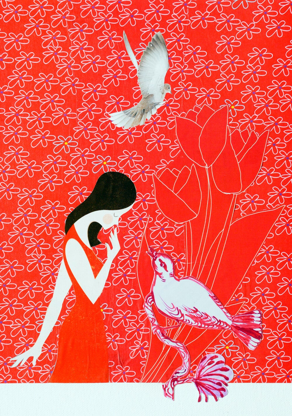 Met bestaand materiaal uit tijdschriften vertel ik graag verhalen in een collage. Ze geven uitdrukking aan een gevoel, idee of een wens en bestaan vaak uit meer dan 10 verschillende beelden die samen weer een nieuw beeld vormen.